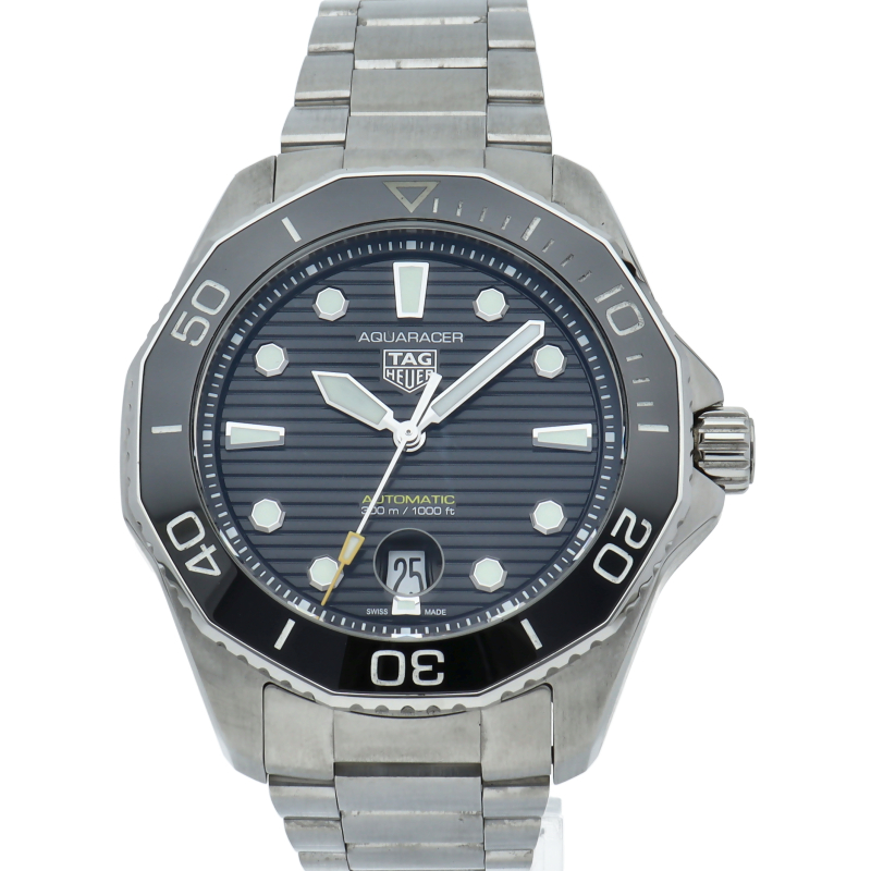 タグ・ホイヤーの人気スポーツウォッチシリーズ「アクアレーサー」。シンプルなデザインで仕上げられた高機能時計です。グレーダイヤルと視認性の高いインデックス、逆回転防止ベゼルの装備など本格ダイバーズウォッチです。