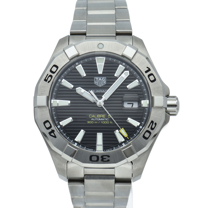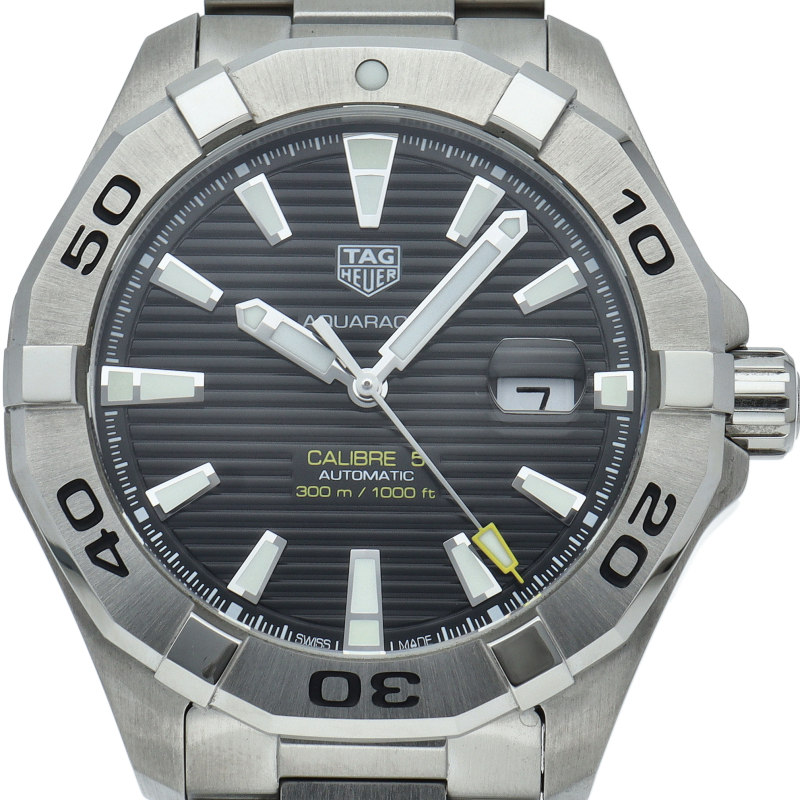 タグ・ホイヤーの人気スポーツウォッチシリーズ「アクアレーサー」。シンプルなデザインで仕上げられた高機能時計です。視認性の高いインデックス、逆回転防止ベゼルの装備など本格ダイバーズウォッチです。