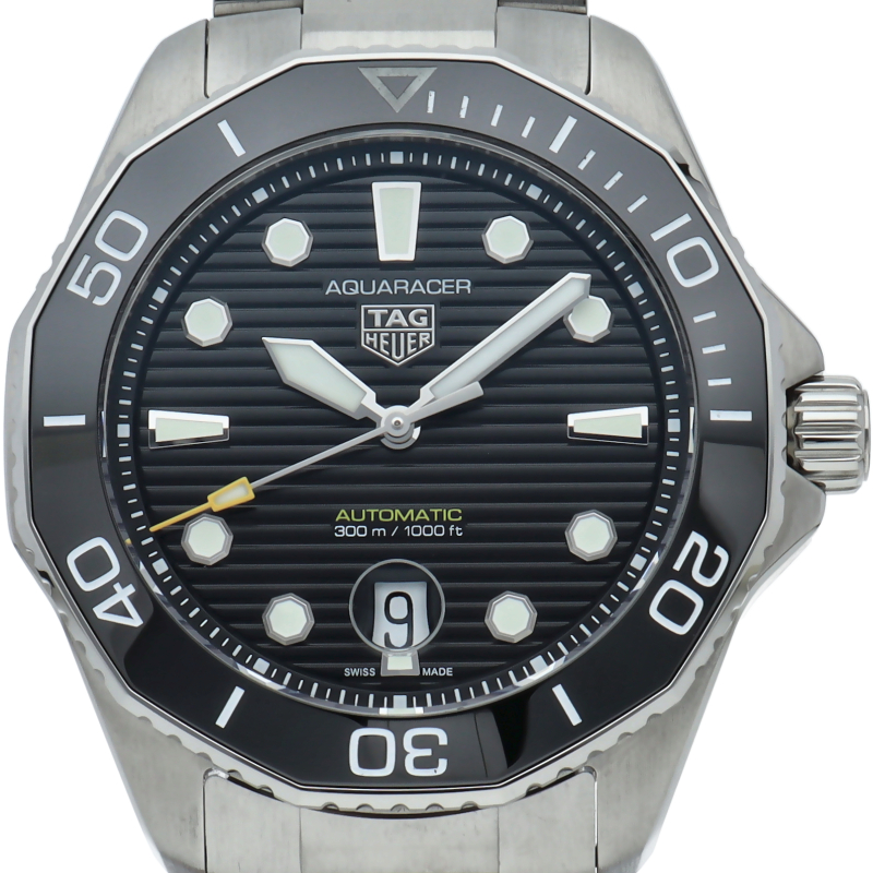 タグ・ホイヤーの人気スポーツウォッチシリーズ「アクアレーサー」。シンプルなデザインで仕上げられた高機能時計です。グレーダイヤルと視認性の高いインデックス、逆回転防止ベゼルの装備など本格ダイバーズウォッチです。