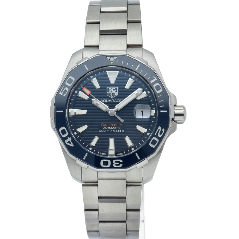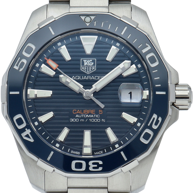 タグ・ホイヤーの人気スポーツウォッチシリーズ「アクアレーサー」。シンプルなデザインで仕上げられた高機能時計です。視認性の高いインデックス、逆回転防止ベゼルの装備など本格ダイバーズウォッチです。