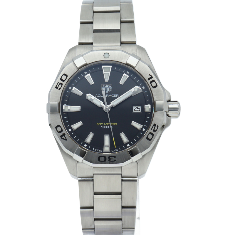 タグ・ホイヤーの人気スポーツウォッチシリーズ「アクアレーサー」。シンプルなデザインで仕上げられた高機能時計です。視認性の高いインデックス、逆回転防止ベゼルの装備など本格ダイバーズウォッチです。