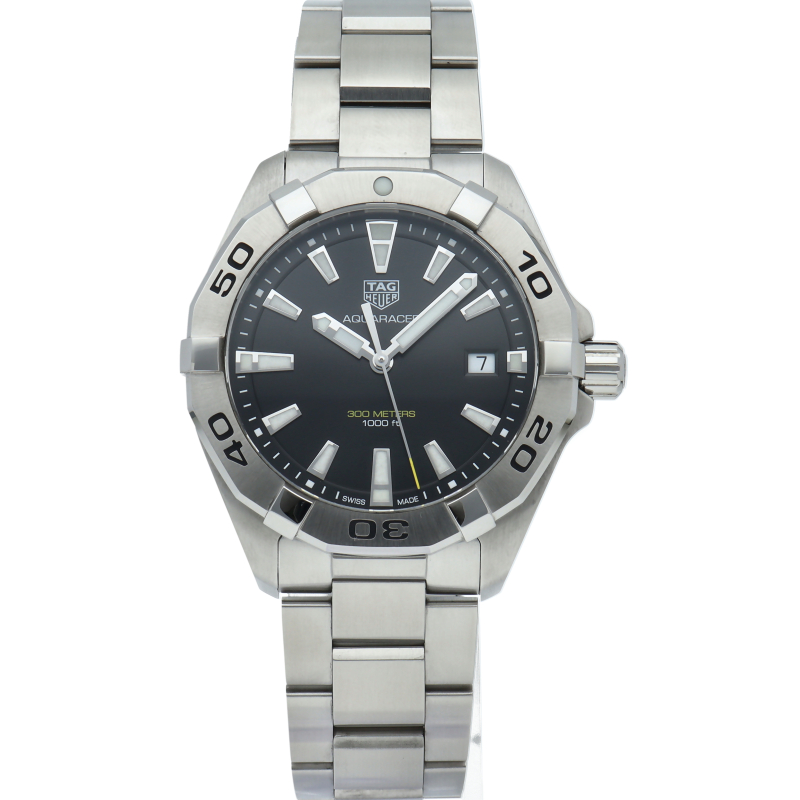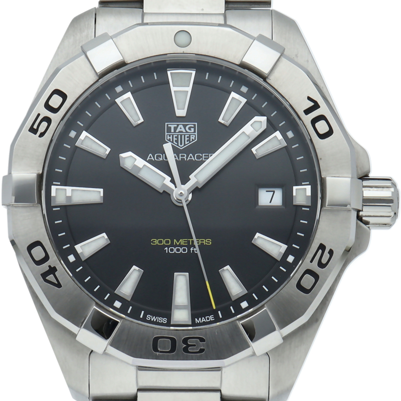 タグ・ホイヤーの人気スポーツウォッチシリーズ「アクアレーサー」。シンプルなデザインで仕上げられた高機能時計です。視認性の高いインデックス、逆回転防止ベゼルの装備など本格ダイバーズウォッチです。