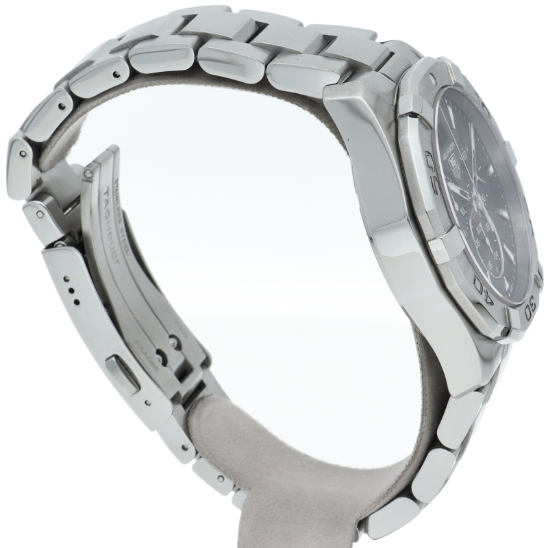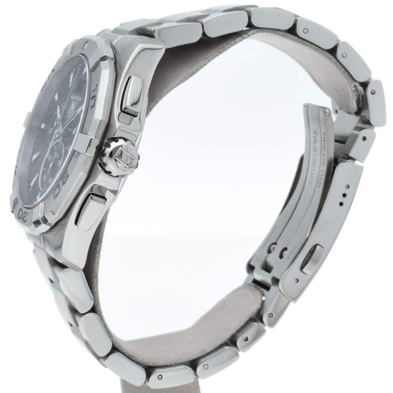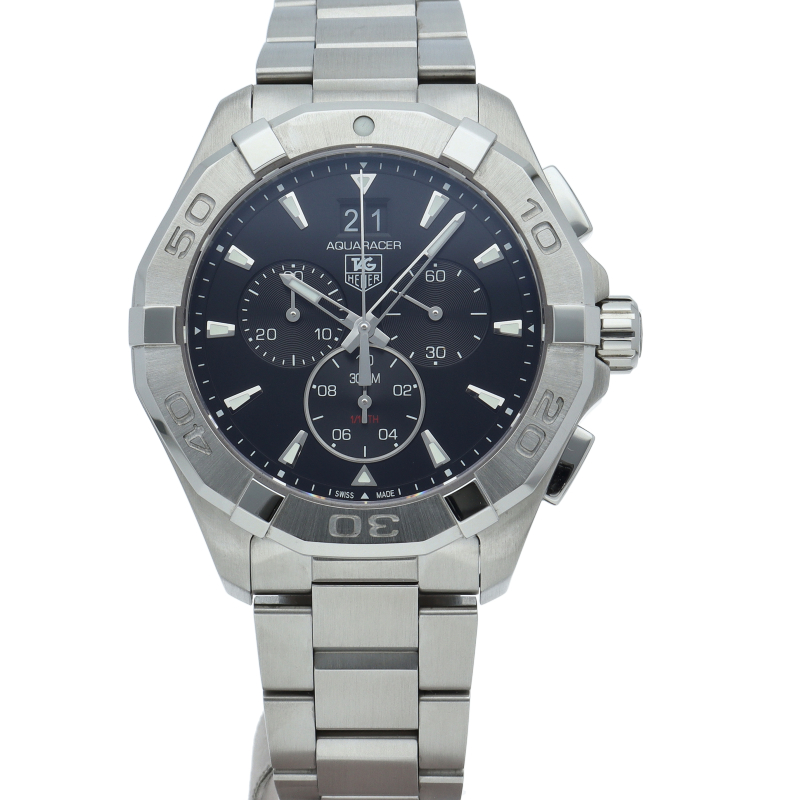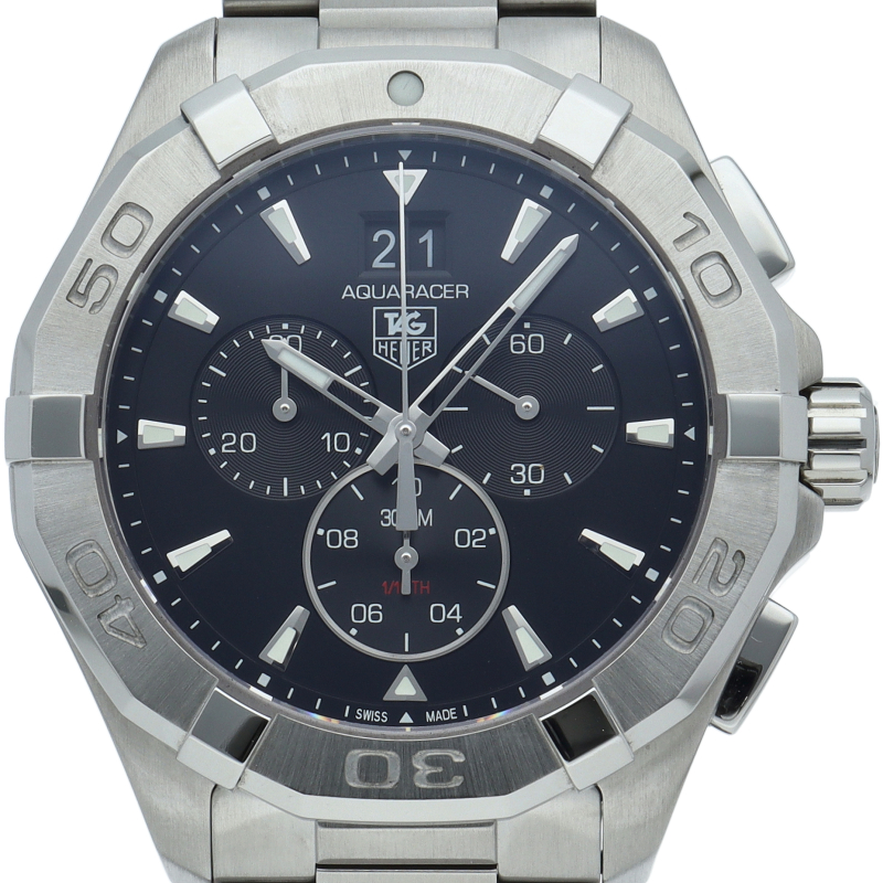 43ミリの大型のケースで主張が強くなったアクアレーサー。12時に配置されたビックデイトや十分の一まで計測可能なクロノグラフ機能が付いた実用性の高い一本です。