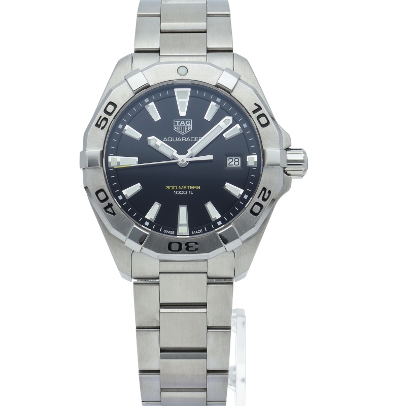 タグ・ホイヤーの人気スポーツウォッチシリーズ「アクアレーサー」。シンプルなデザインで仕上げられた高機能時計です。視認性の高いインデックス、逆回転防止ベゼルの装備など本格ダイバーズウォッチです。