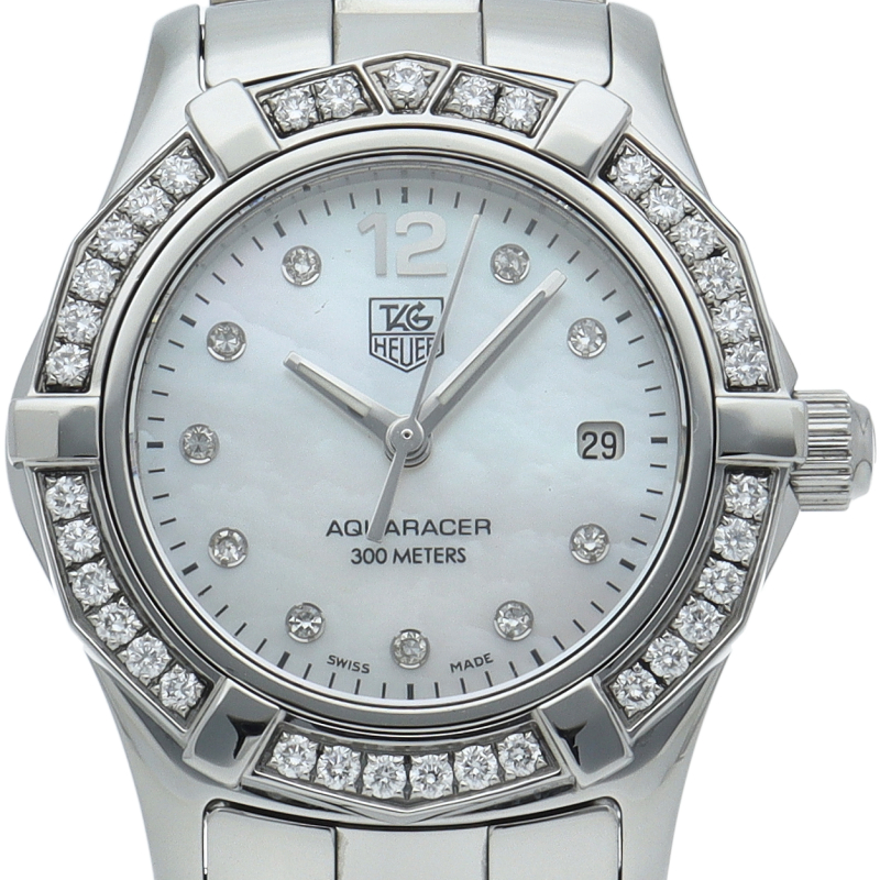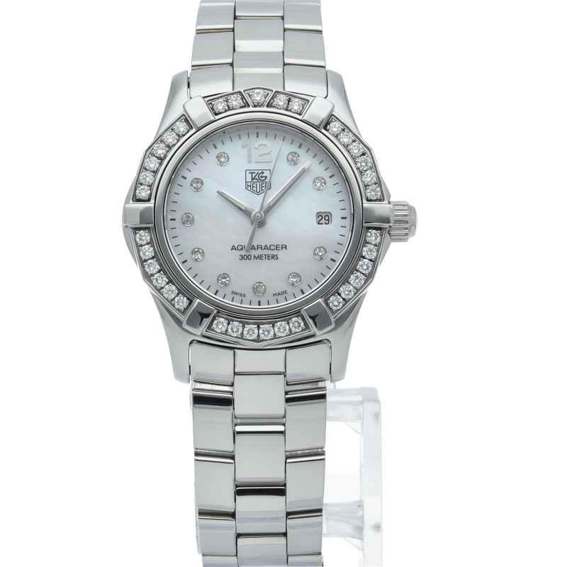 タグホイヤーからあらゆるマリンスポーツに求められる精密さをめざして設計された『アクアレーサー』です。ホワイトシェル文字盤とポイントダイヤがエレガントな装いにもぴったりです。
