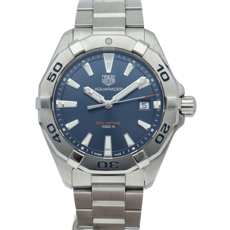タグ・ホイヤーの人気スポーツウォッチシリーズ「アクアレーサー」。シンプルなデザインで仕上げられた高機能時計です。視認性の高いインデックス、逆回転防止ベゼルの装備など本格ダイバーズウォッチです。
