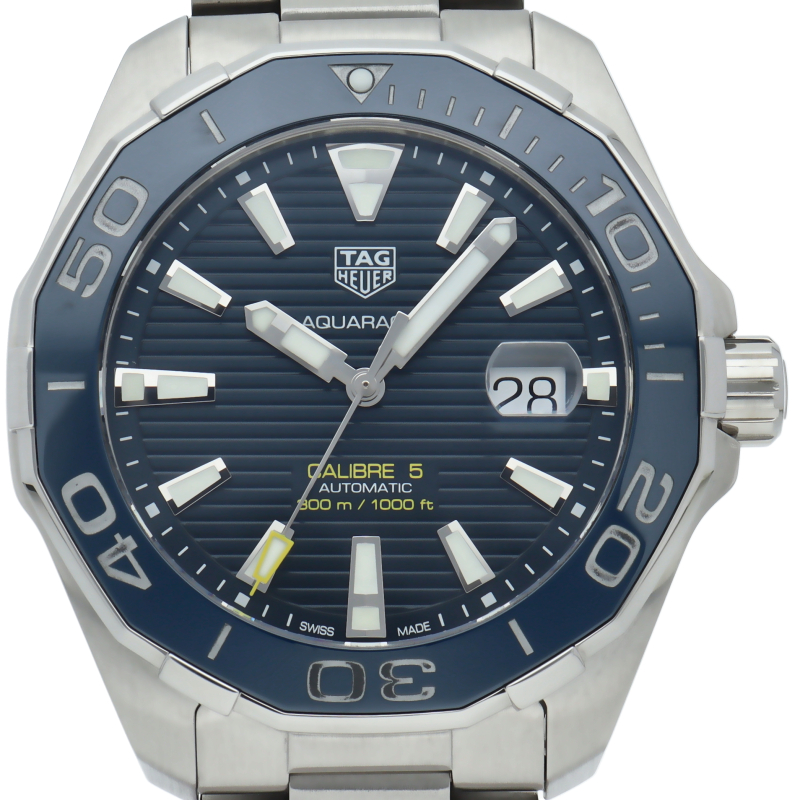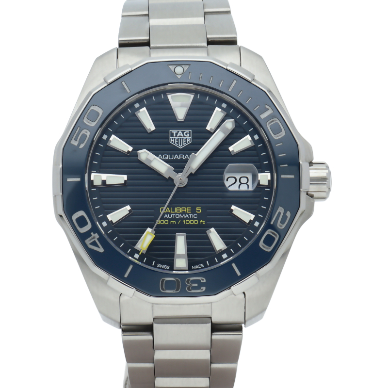 タグ・ホイヤーの人気スポーツウォッチシリーズ「アクアレーサー」。シンプルなデザインで仕上げられた高機能時計です。視認性の高いインデックス、逆回転防止ベゼルの装備など本格ダイバーズウォッチです。