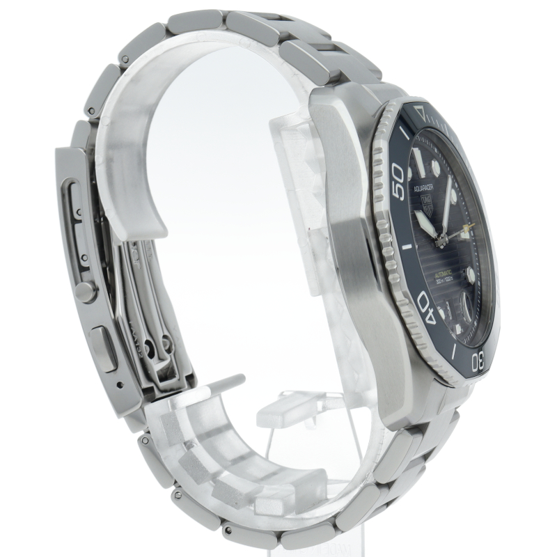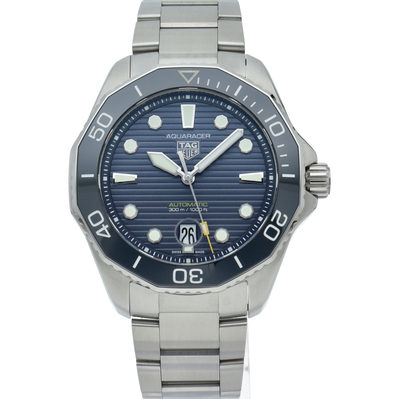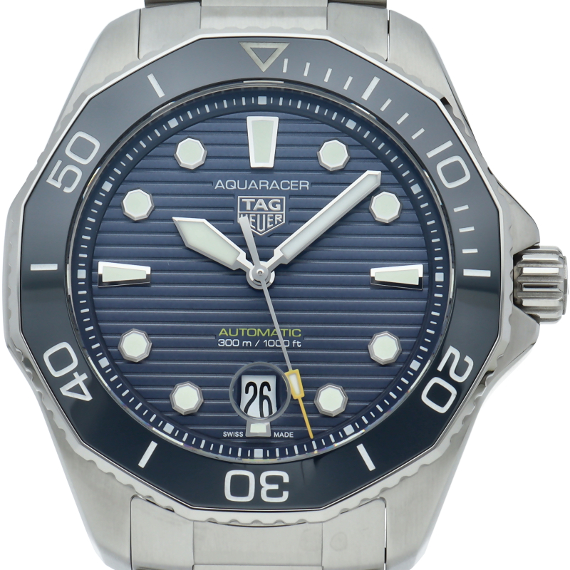 自動巻機械式ムーブメント、キャリバー5を搭載した新しいタグ・ホイヤー アクアレーサー。ブルーサンレイ仕上げを施したダイヤルを備え、最大300メートルの防水性をもちます。どんな状況にも耐え得る、真のダイビングウォッチです。