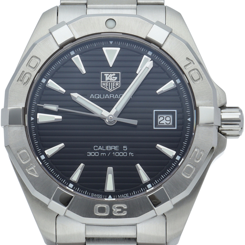 タグ・ホイヤーの人気スポーツウォッチシリーズ「アクアレーサー」。シンプルなデザインで仕上げられた高機能時計です。グレーダイヤルと視認性の高いインデックス、逆回転防止ベゼルの装備など本格ダイバーズウォッチです。