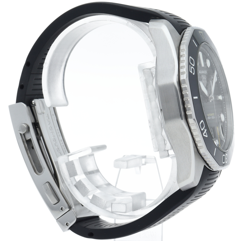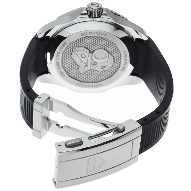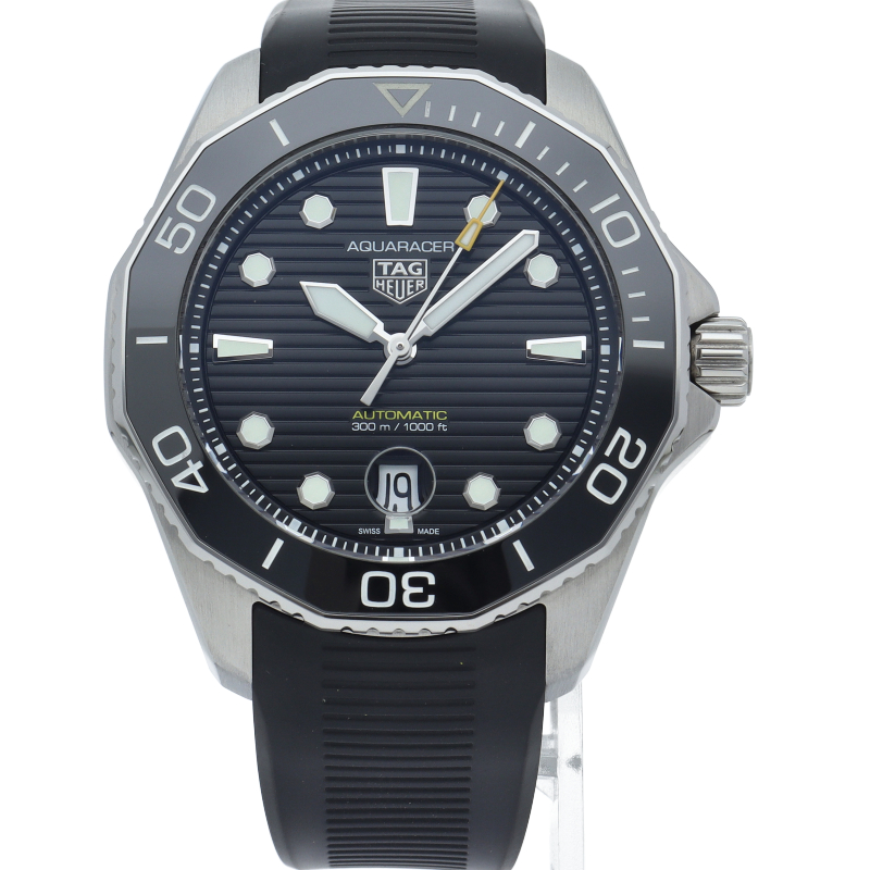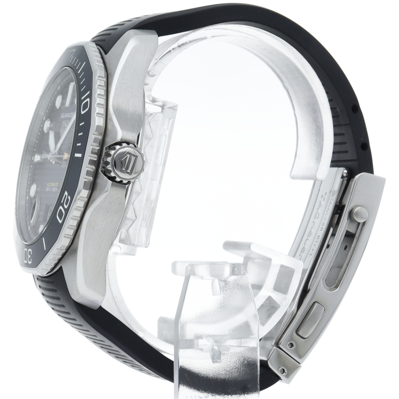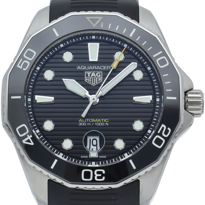 自動巻ムーブメント キャリバー5搭載のタグ・ホイヤー アクアレーサー プロフェッショナル300。デイトが6時位置に移動し、サイクロップレンズも風防の内側へと取り付けられております。さらにブレスレット構造も最新版となっており、マイクロアジャストシステムによって1.5センチの調整が可能となっております。