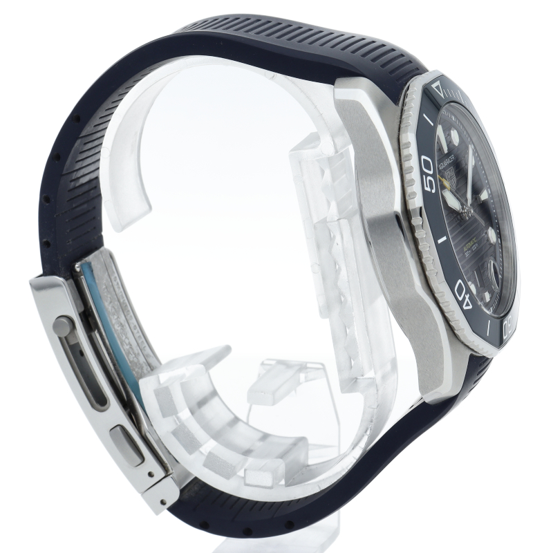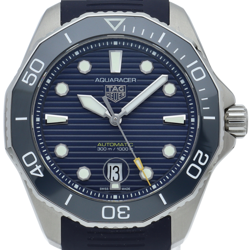 自動巻機械式ムーブメント、キャリバー5を搭載した新しいタグ・ホイヤー アクアレーサー。ブルーサンレイ仕上げを施したダイヤルを備え、最大300メートルの防水性をもちます。どんな状況にも耐え得る、真のダイビングウォッチです。