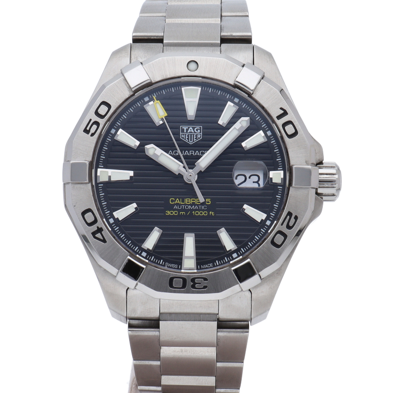 タグ・ホイヤーの人気スポーツウォッチシリーズ「アクアレーサー」。シンプルなデザインで仕上げられた高機能時計です。視認性の高いインデックス、逆回転防止ベゼルの装備など本格ダイバーズウォッチです。