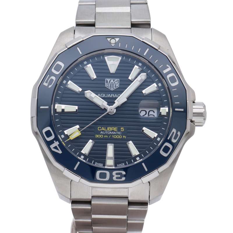 タグ・ホイヤーの人気スポーツウォッチシリーズ「アクアレーサー」。シンプルなデザインで仕上げられた高機能時計です。視認性の高いインデックス、逆回転防止ベゼルの装備など本格ダイバーズウォッチです。