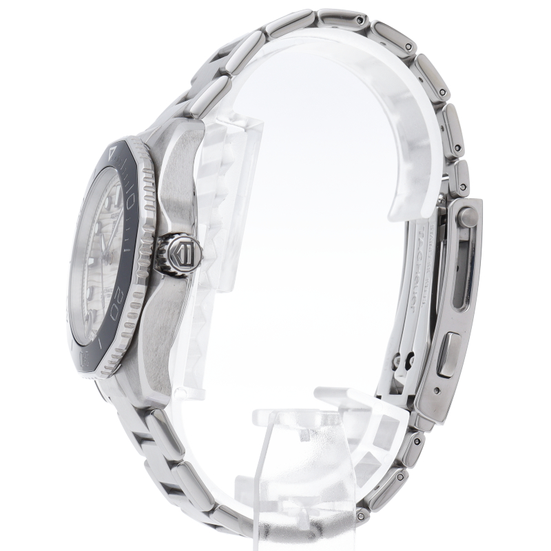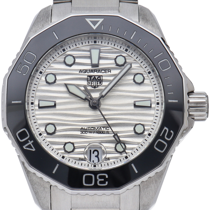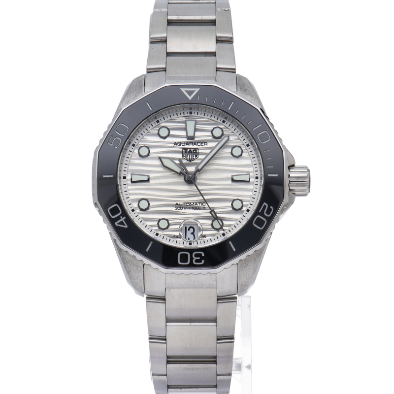 300mの防水性能を誇るタグホイヤーの人気ダイバーズウォッチです。こちらは36mmケースのレディースモデルとなります。ベゼルは耐傷性に優れたセラミック製で文字盤には波の揺らめきを表現した模様が施されております。ブレスレットは高級感のあるポリッシュとサテン仕上げが施されたステンレス製でバックル部分では長さの微調整が出来る様になっております。高いデザイン性と実用性を兼ね備えたモデルです。