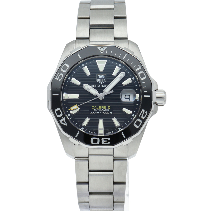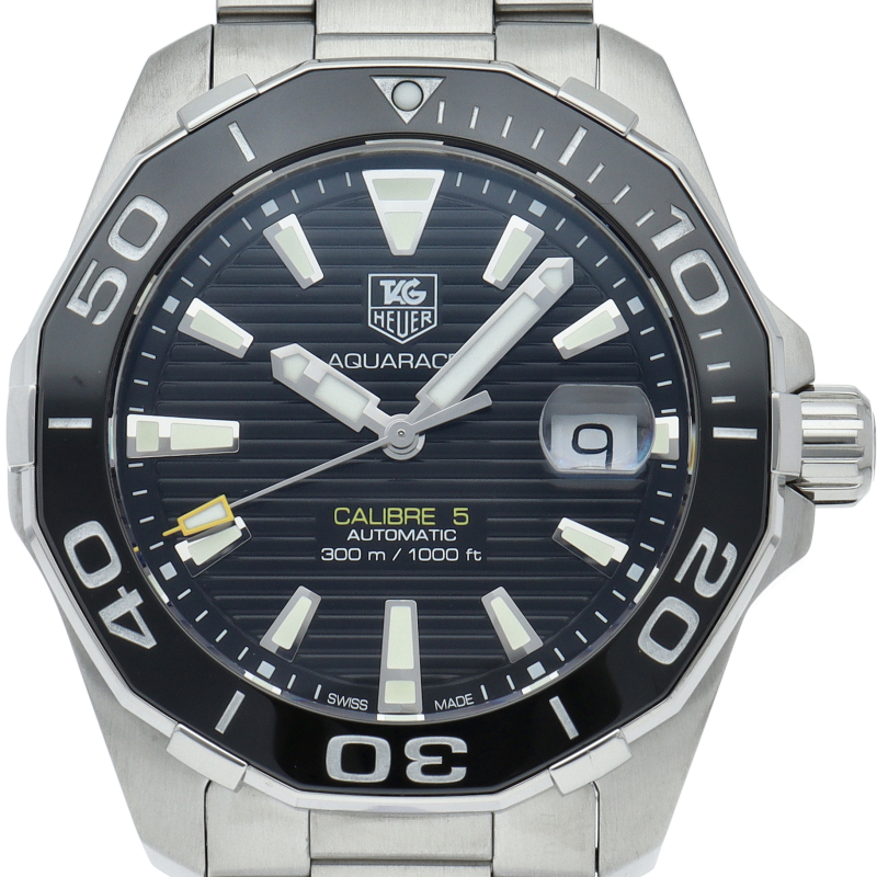 タグ・ホイヤーの人気スポーツウォッチシリーズ「アクアレーサー」。シンプルなデザインで仕上げられた高機能時計です。視認性の高いインデックス、逆回転防止ベゼルの装備など本格ダイバーズウォッチです。