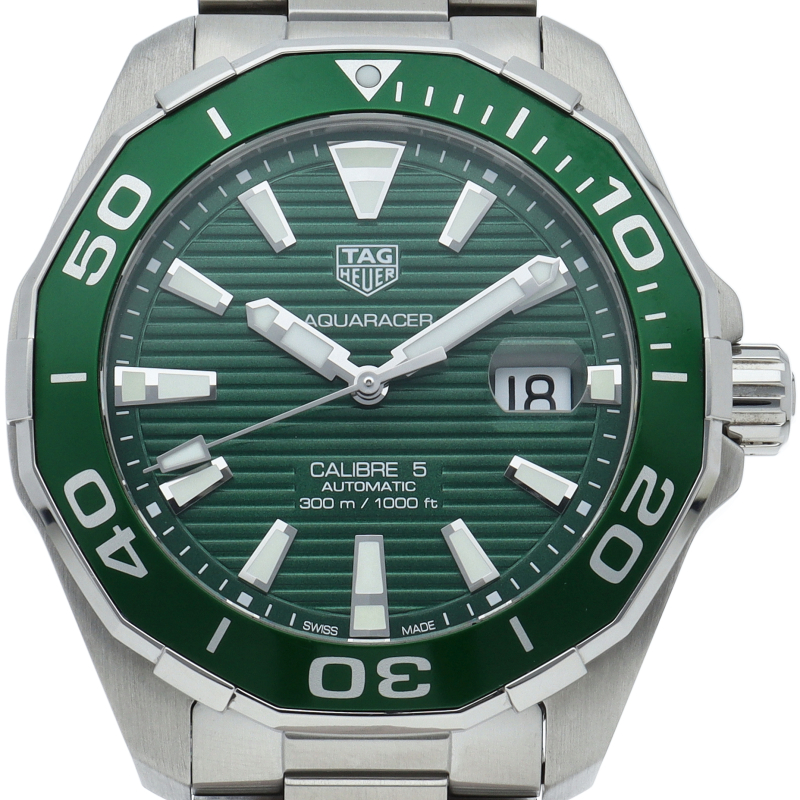 抜群のコストパフォーマンスを誇る300m防水のプロフェッショナルダイバーウォッチ「アクアレーサー キャリバー 5」。実用性も兼ね備えてオンオフ問わずご着用頂けますが、こちらは緑のアルミニウムベゼルが特徴のワンショット限定モデルです。