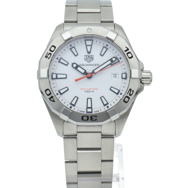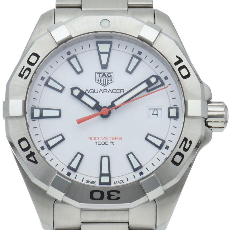 タグ・ホイヤーの人気スポーツウォッチシリーズ「アクアレーサー」。シンプルなデザインで仕上げられた高機能時計です。ビッグデイトと視認性の高いインデックス、逆回転防止ベゼルの装備など本格ダイバーズウォッチです。