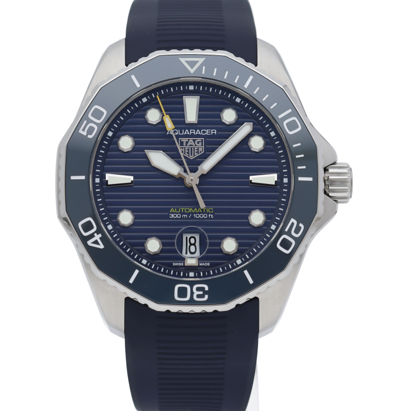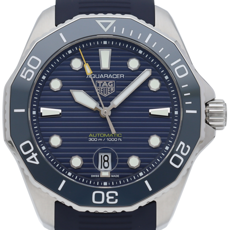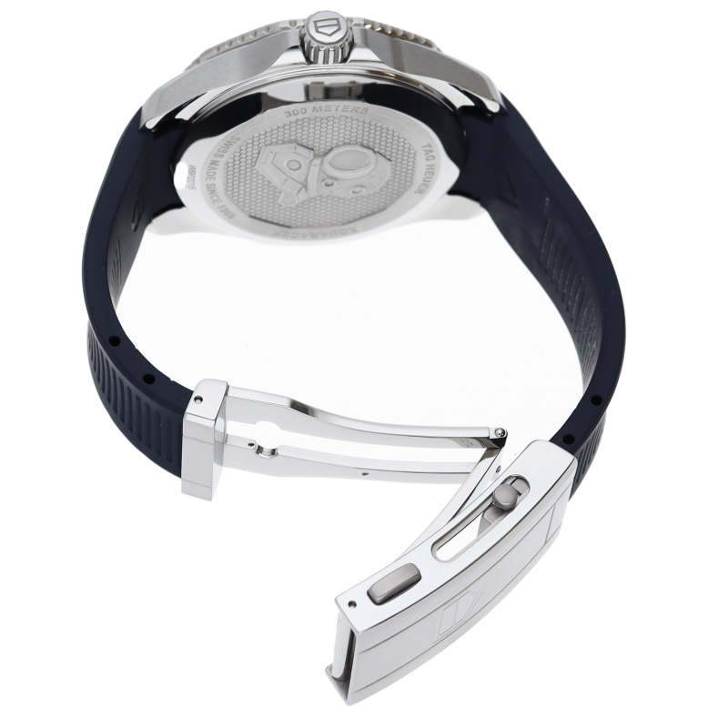 自動巻機械式ムーブメント、キャリバー5を搭載した新しいタグ・ホイヤー アクアレーサー。ブルーサンレイ仕上げを施したダイヤルを備え、最大300メートルの防水性をもちます。どんな状況にも耐え得る、真のダイビングウォッチです。