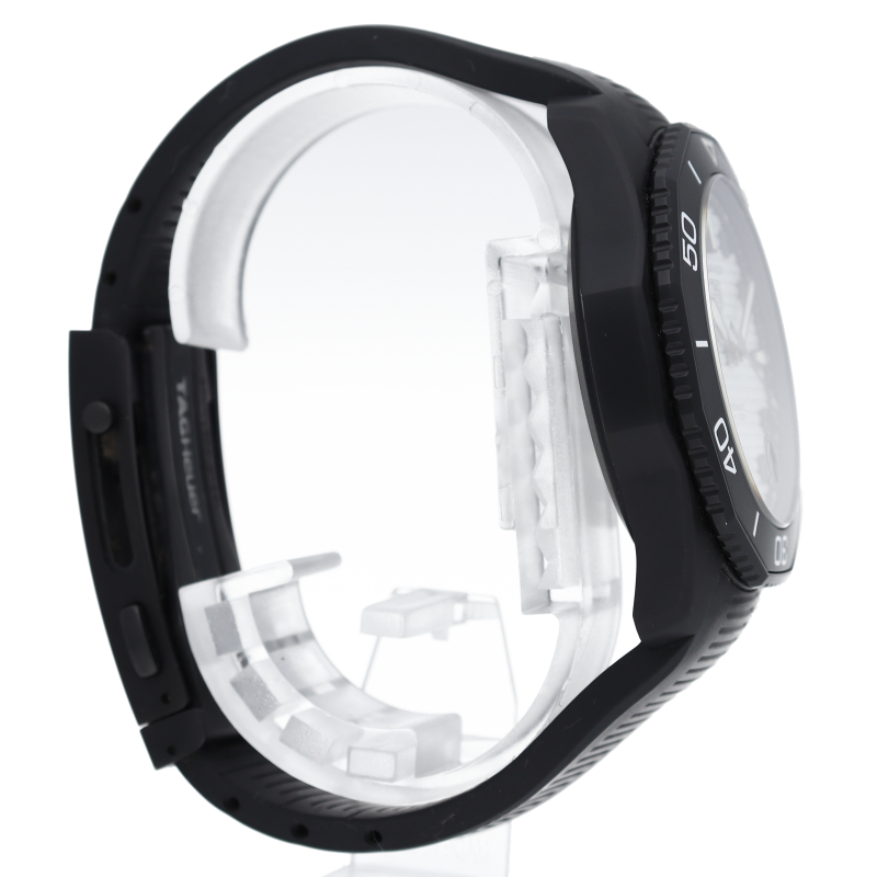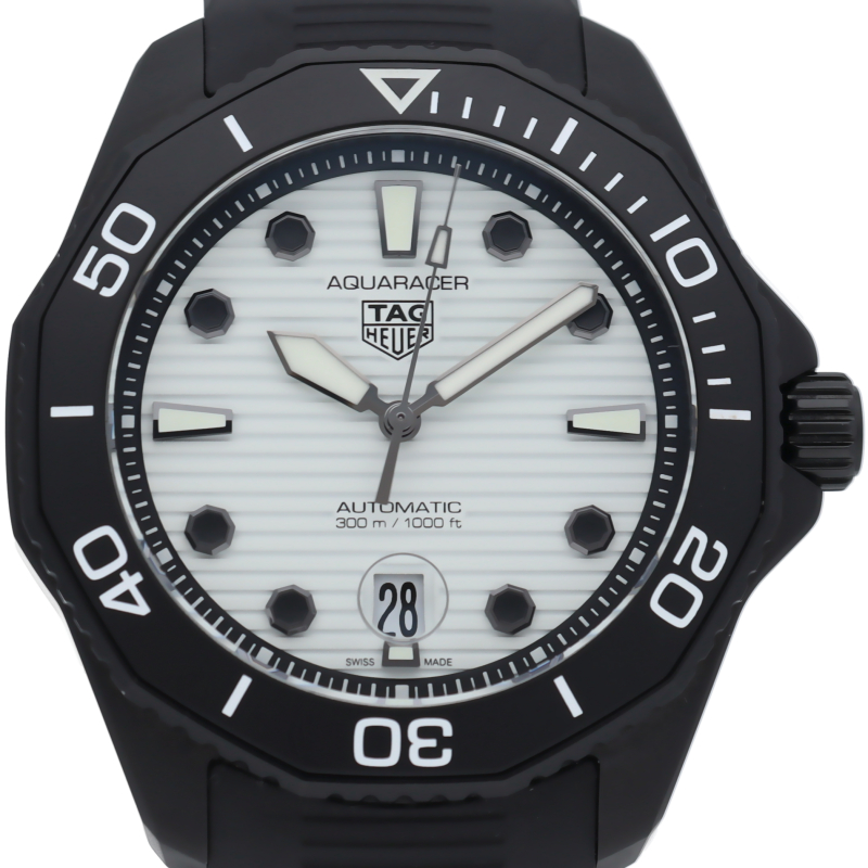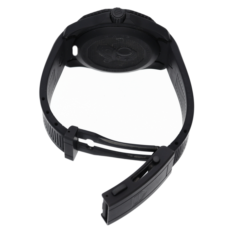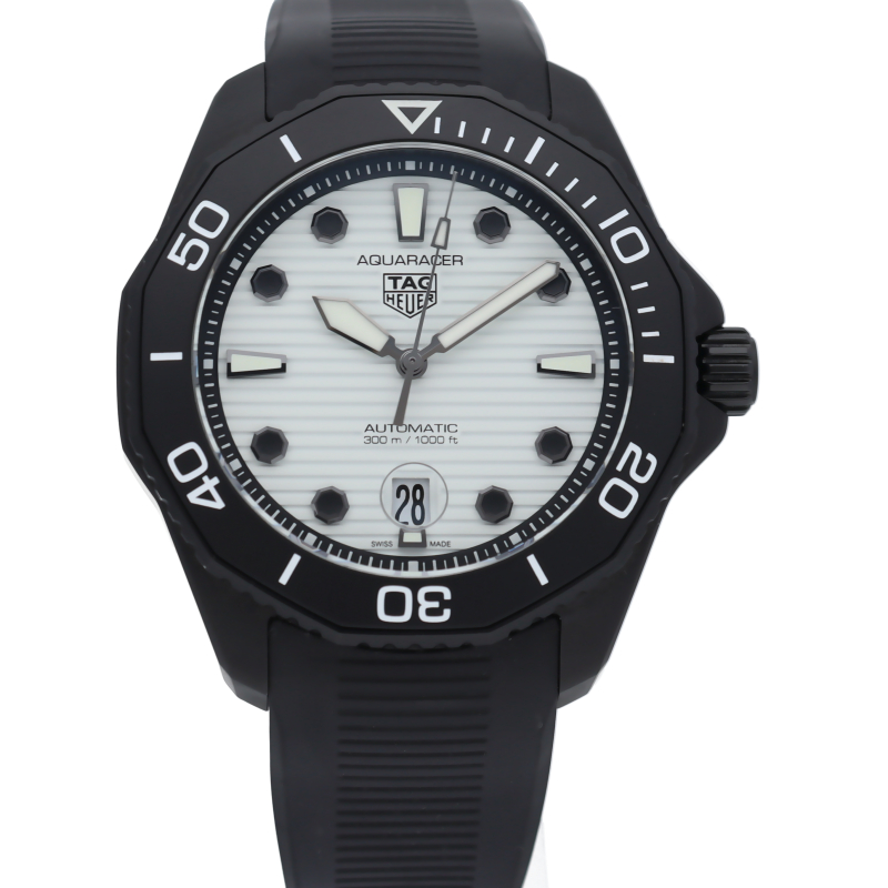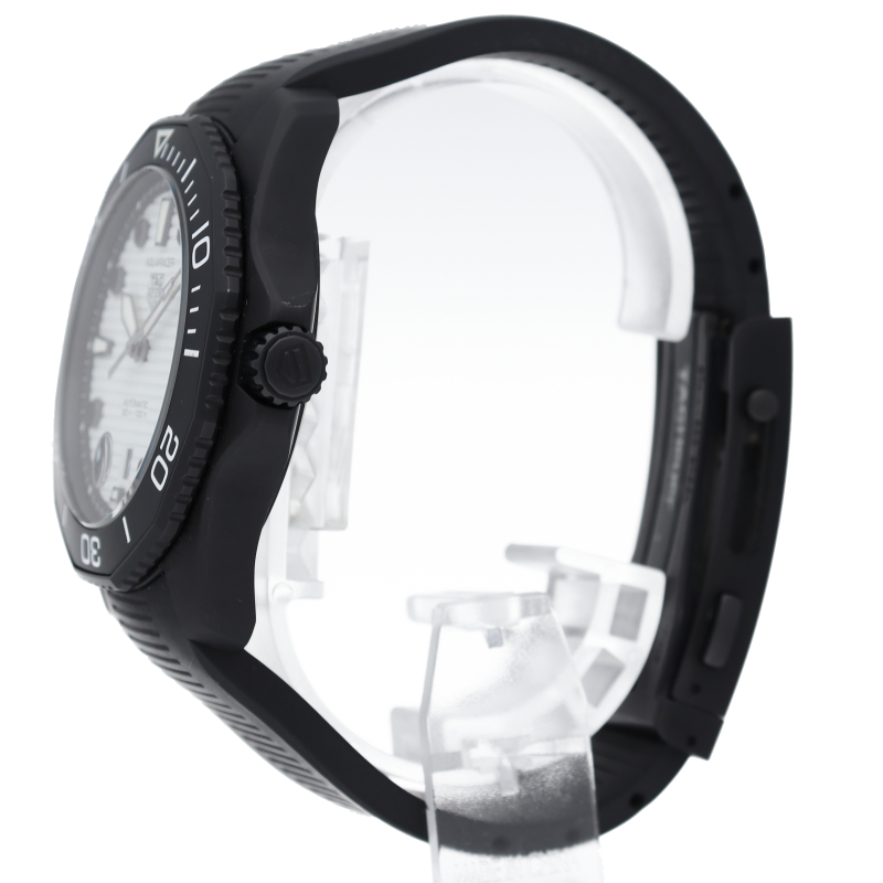他とは違うスタイルをもつダイビング ウォッチ。大胆ながらも控えめな、自動巻ムーブメント、キャリバー5を搭載したタグ・ホイヤー アクアレーサー プロフェッショナル300 ナイトダイバー。DLCコーティングを施した43mmのステンレススティール製ケースに、ブラックのセラミック製ベゼルを備えています。