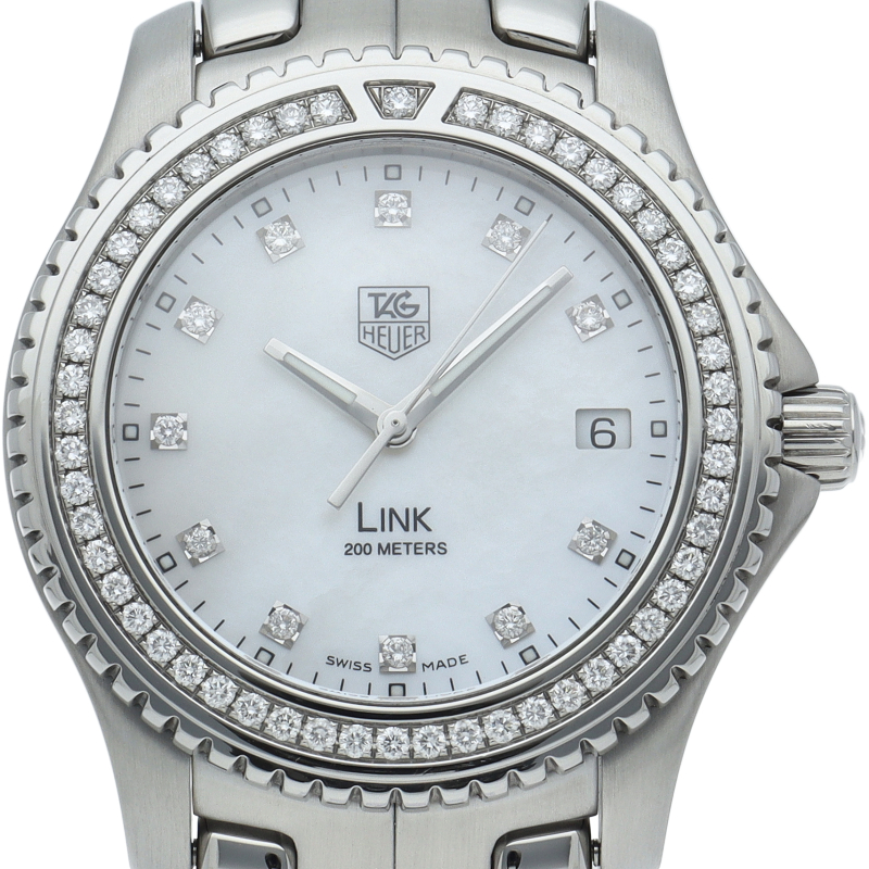 特徴的なブレスレットで、タグ・ホイヤーの時計と言えば思い浮かべる方も多い人気モデル「リンク」。数多いバリエーションのうち、こちらはレディースサイズのクォーツモデル。美しいダイヤモンドとホワイトシェルのダイヤルが華やかな雰囲気を演出します。