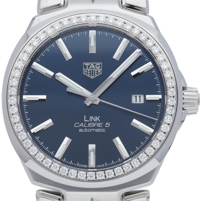 カレラ、モナコに並ぶタグホイヤー定番モデル「リンク」。快適さとエレガンスの融ブルーの3針モデルにダイヤモンドを配した、美しさ際立つモデル。人間工学に基づいて設計されたS字型ブレスレットにより、快適な着け心地を誇る。快適さとエレガンスを同時に提供するユニセックスモデル。