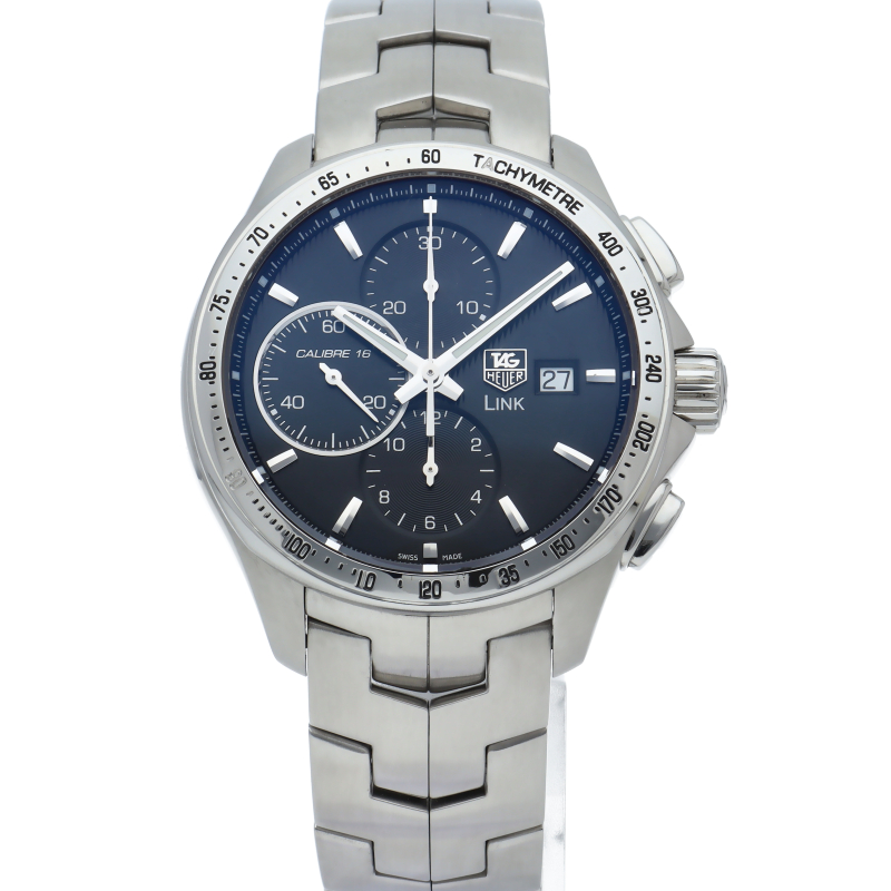 タグホイヤーの人気シリーズ「リンク」。人間工学に基づいたフォルムと、スポーティかつモダンで洗練されたデザインが魅力的なシリーズです。クロノグラフ機能付。キャリバー16搭載。