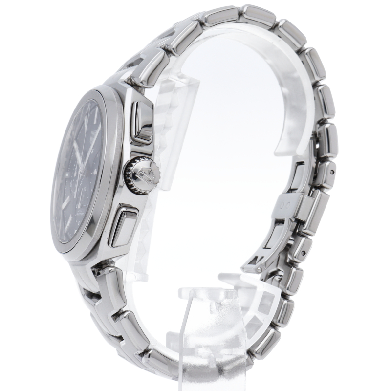 タグホイヤー人気のスポーツモデル、リンク。自動巻きクロノグラフムーブメントキャリバー17を搭載し、3つのインダイヤルにスモールセコンド、12時間計、30分計、4時30分の窓に日付を表示します。