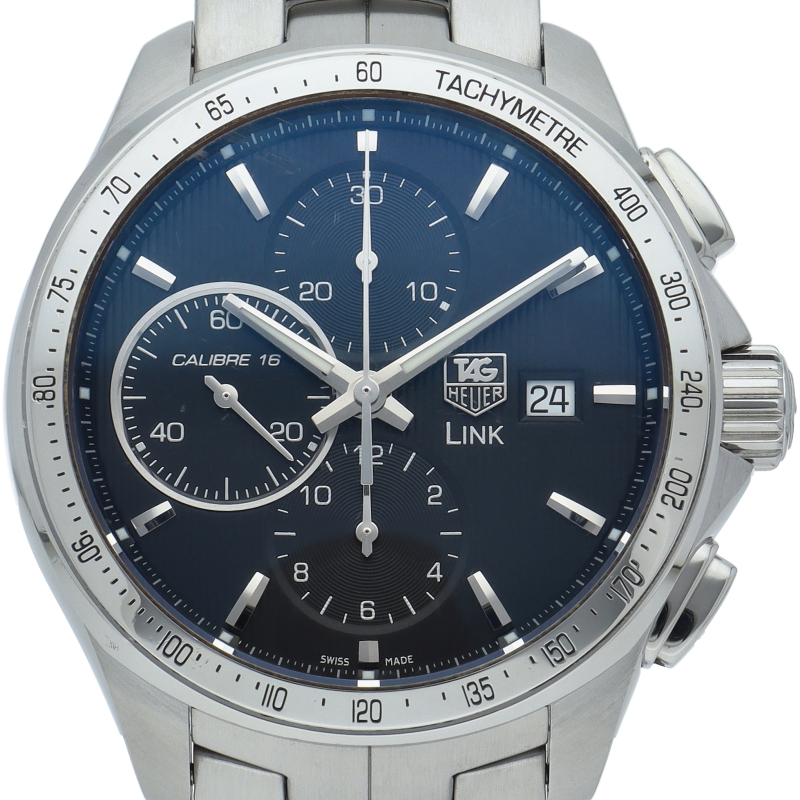 タグホイヤーの人気シリーズ「リンク」。人間工学に基づいたフォルムと、スポーティかつモダンで洗練されたデザインが魅力的なシリーズです。クロノグラフ機能付。キャリバー16搭載。
