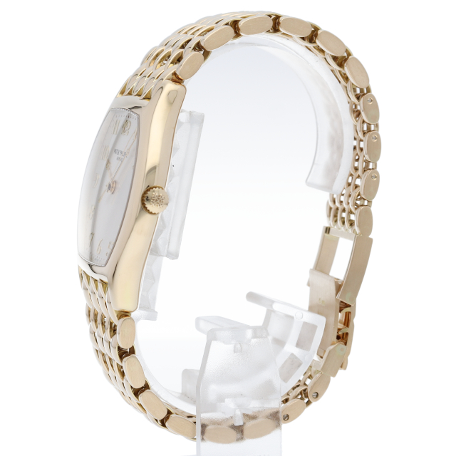 パテックフィリップが作る「ゴンドーロ」とは、ブラジルの有名パテック・フィリップの販売店、高級時計宝飾店「ゴンドーロ&ラブリオ社」のために制作した「クロノメトロ・ゴンドーロ」由来。レクタングラー型、トノー型、クッション型など、ラウンド型以外が存在するコレクションです。