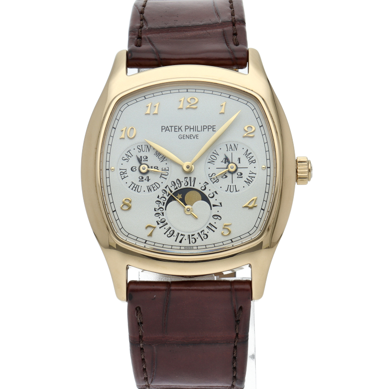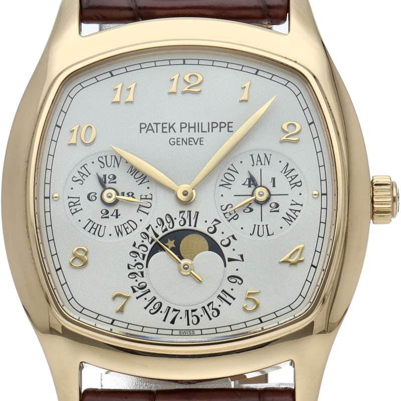 時計界の頂点を極め、今なお時計界の頂点に燦然と輝き続けるパテック・フィリップ。こちらはグランドコンプリケーションモデル「Ref.5140]の2012年登場のイエローゴールド仕様です。ブレゲ数字インデックス、永久カレンダーとムーンフェイズが文字盤にバランス良く配置。アール・デコ様式からインスピレーションを得た上品なスタイルに仕上げられています。