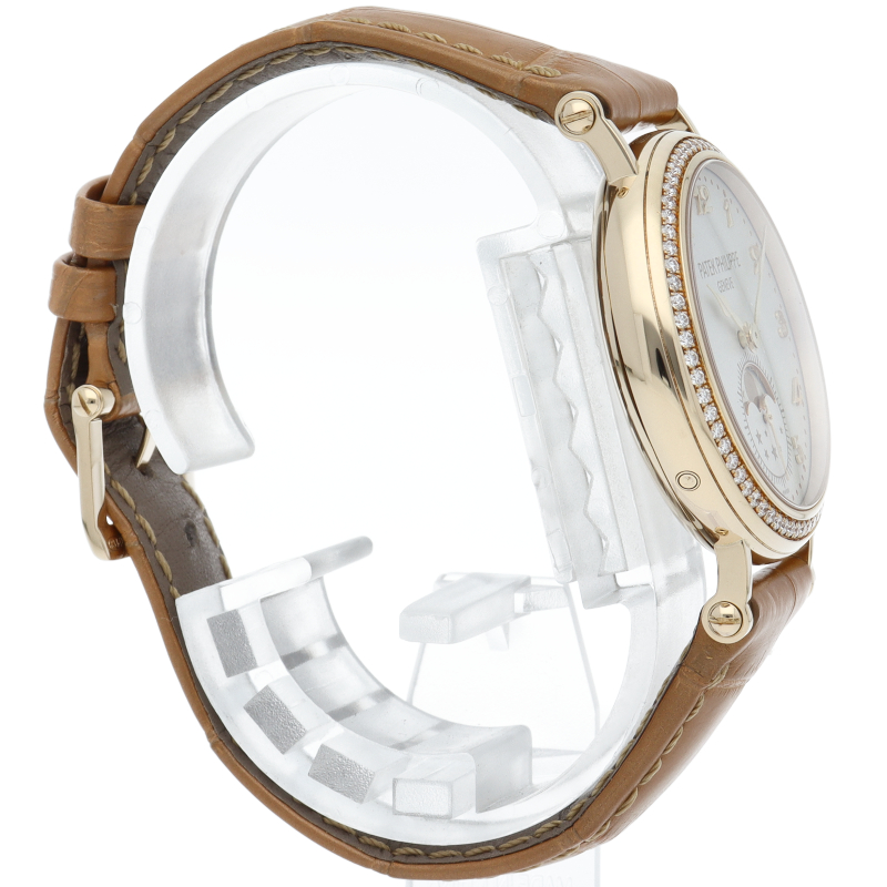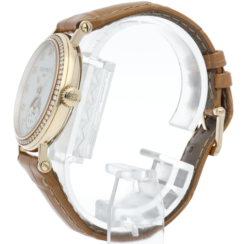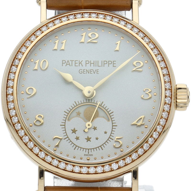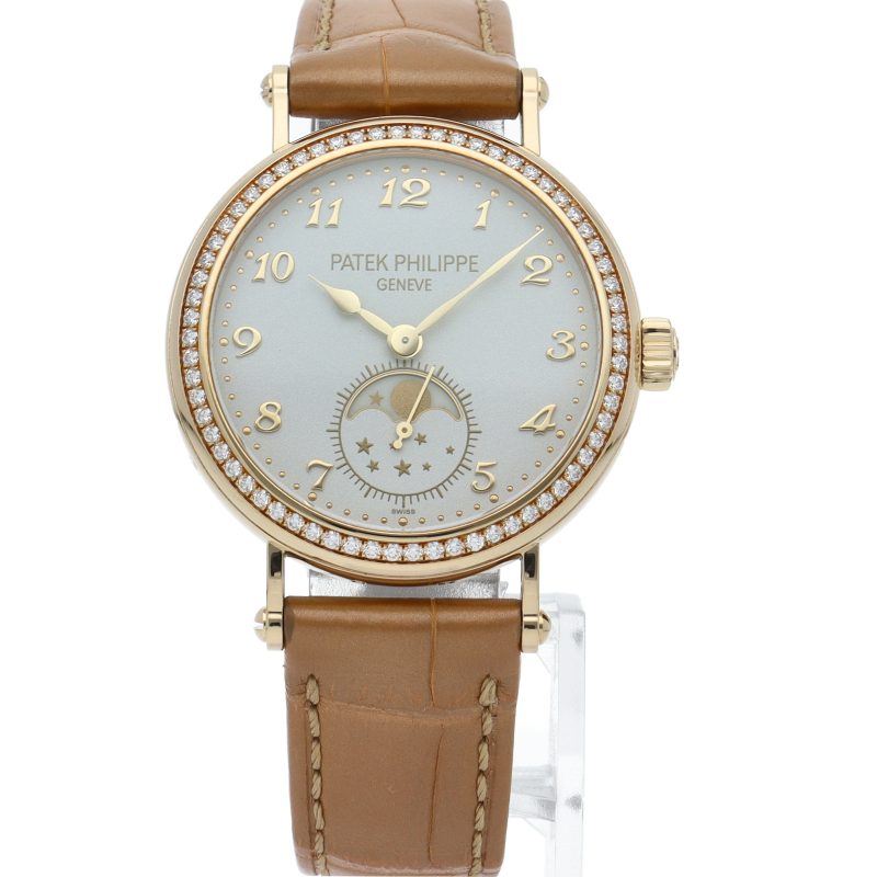 世界最高峰の時計ブランド、パテックフィリップのコンプリケーション ムーンフェイズが入荷しました。ベゼルには66個のダイヤモンドが施されており、お手元を華やかに魅せてくれます。6時位置にはスモールセコンドとムーンフェイズ、ケースとバックルはイエローゴールド製です。全体的に色味が統一されており、大変美しい仕上がりとなっています。