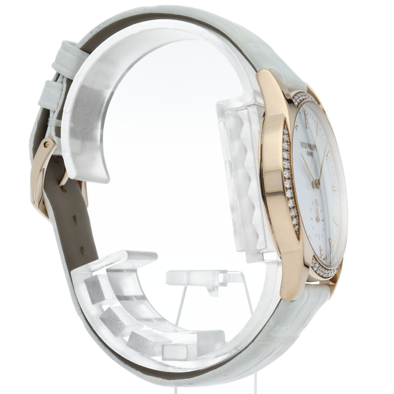 世界最高峰の腕時計ブランドと称される「パテック・フィリップ」。パテックを代表する人気モデル「カラトラバ」。こちらは並みいるスイスの時計メーカーで最も優れた機械式の時計を製造し続けるパテック社の時計です。 ホワイト文字盤にスモールセコンドとホブネイルパターンインデックスにより、シンプルなデザインの中に品格があるモデルです。