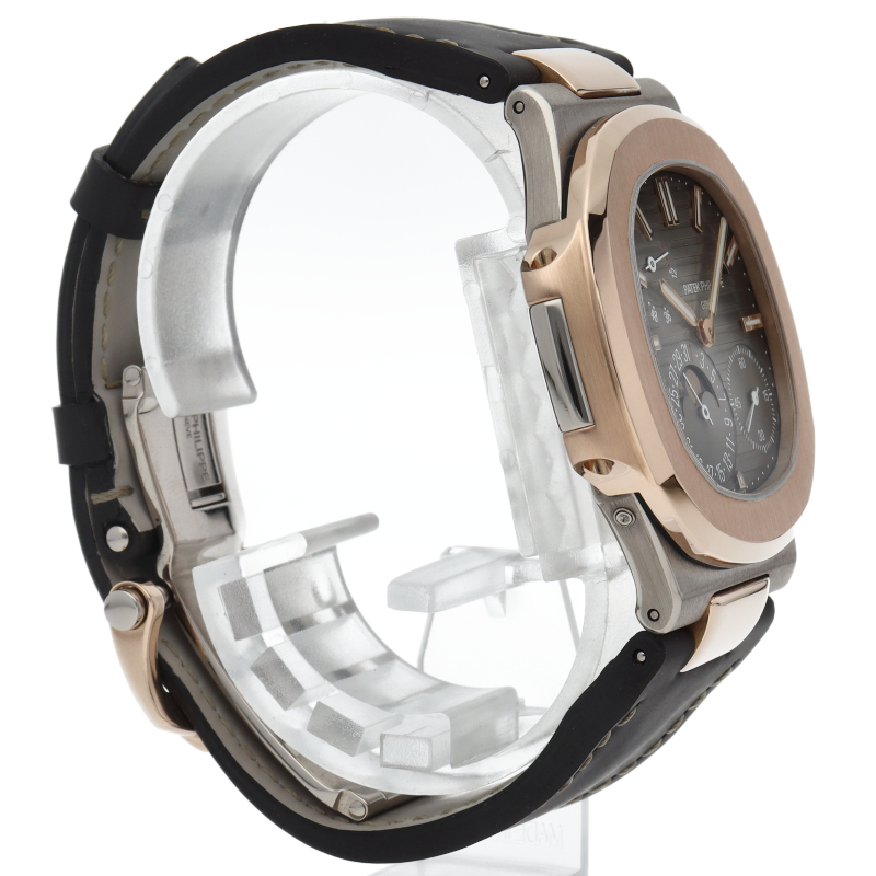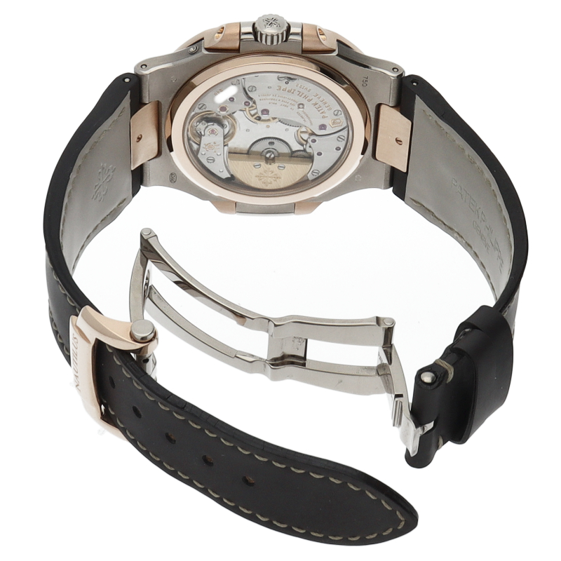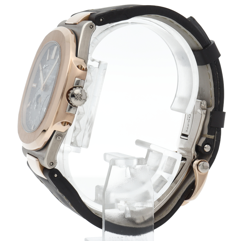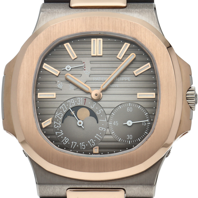 世界最高峰の腕時計ブランドと称されるパテック・フィリップの人気モデル「ノーチラス」。丸みを帯びた8角形のベゼルや水平エンボス文字盤など、1976年のブランド誕生以来カジュアル・エレガンスを体現しています。マイクロローター搭載の自動巻きムーブメントCal.240 PS IRM C LUを搭載。日付表示、ムーンフェイズ、パワーリザーブの機能が搭載されたプチコンプリケーションモデルです。