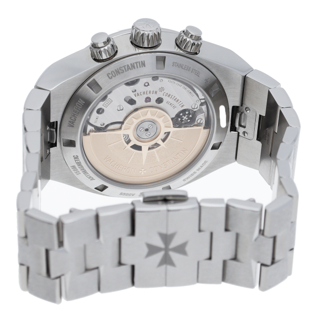 世界三大時計ブランドのヴァシュロン・コンスタンタンの名作、「オーヴァーシーズ」。こちらのクロノグラフモデルも2016年にフルモデルチェンジが行われ、今作より裏蓋がシースルーバック仕様となりました。ムーブメントにはマルタ十字がデザインされたピラーホイールが目を引くジュネーブシール取得のキャリバー5200を搭載。