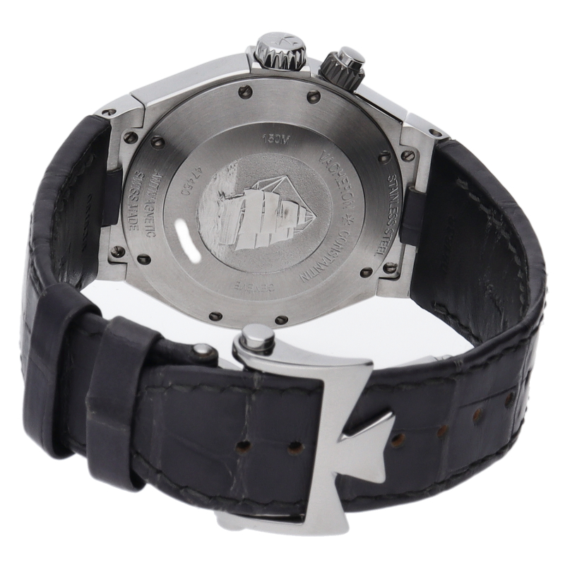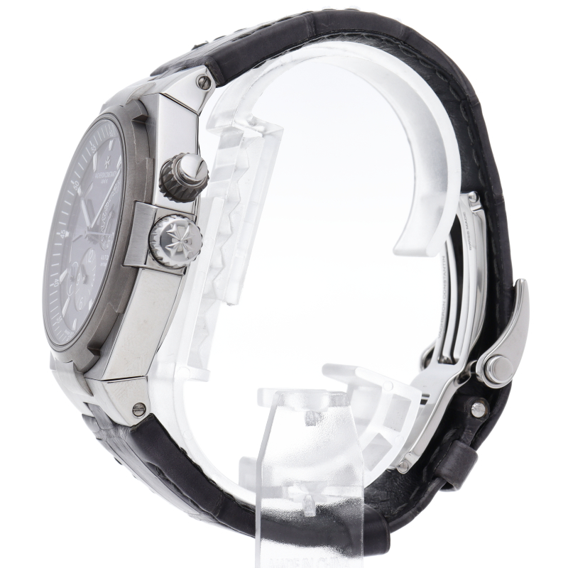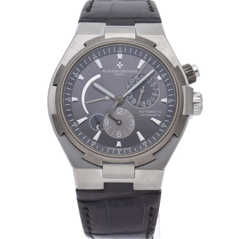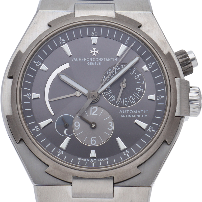 高級スポーツウォッチの世界にすっかり定着した人気モデル「オーヴァーシーズ デュアルタイム」に追加された新作モデル。ヴァシュロンの象徴である「マルタ十字」をかたどったベゼルは、マットな質感が特徴のチタニウム製。グレーのダイアルが見事にマッチしていて、面白い雰囲気のモデルに仕上げられています。デュアルタイム機能、パワーリザーブインジケーターとデイ&ナイト表示機能を搭載。