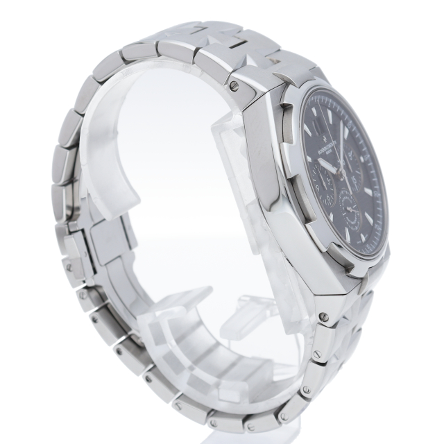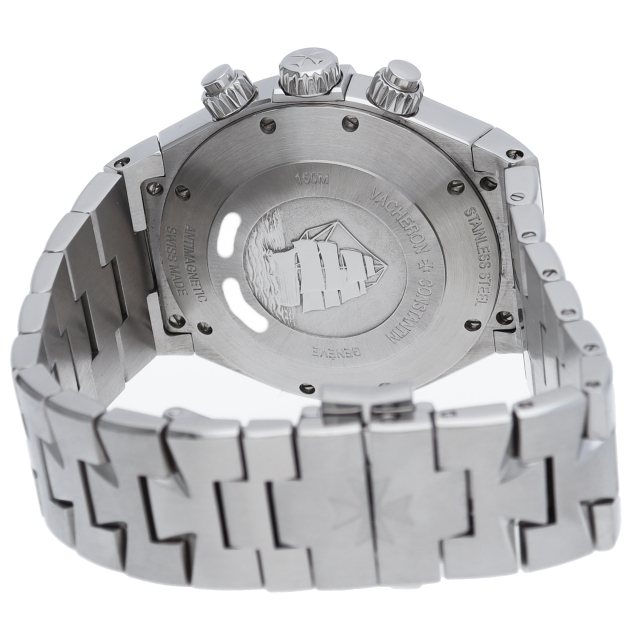 ヴァシュロンの人気スポーツモデル「オーバーシーズ」。前作からモデルチェンジをして生まれ変わったこのモデルは、各所にブランドのトレードマークであるマルタ十字のモチーフが見られ、ブレスも個性的なデザインになっています。クロノグラフ機能搭載。