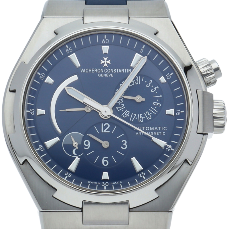世界3大腕時計メーカーの一角、ヴァシュロンコンスタンタンの定番スポーツライン「オーバーシーズ」。パワーリザーブ表示、ナイト&デイ表示を備えた人気モデルです。裏蓋には、イタリアの探検家にして地理学者であるアメリゴ・ヴェスプッチの帆船がエングレービングされています。