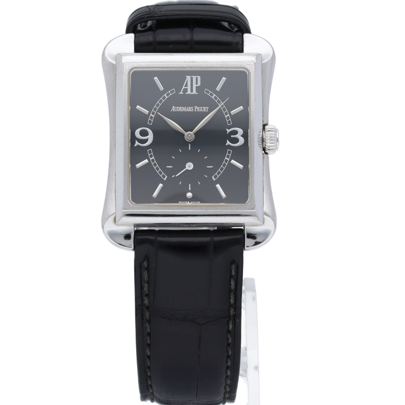 世界三大時計メーカーの1つのオーデマ・ピゲ。黒文字盤にシルバーのインデックス、エレガントなラグの曲線とエッジの利いたベゼルの組み合わせが存在感のあるモデルです。