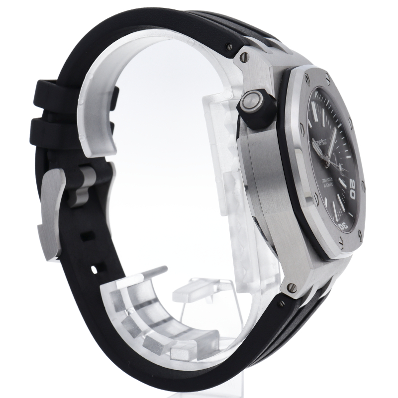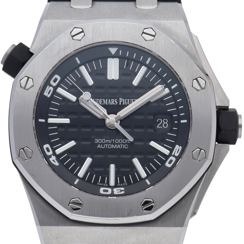 潜水時間測定とデイト付自動巻ウォッチ。ステンレスケースに、反射防止加工サファイヤクリスタルとシースルーバック。世界屈指の技術力のあるオーデマピゲが作った本格派ダイバーズウォッチです。