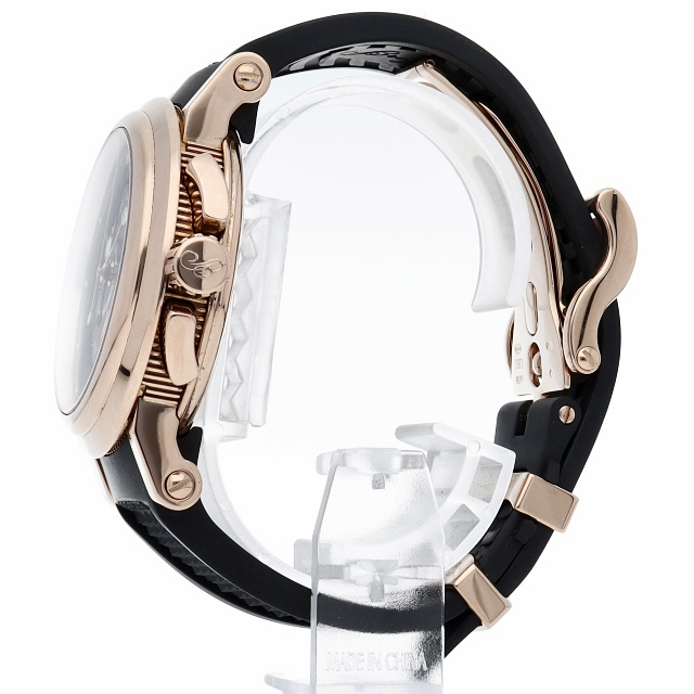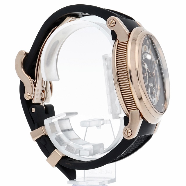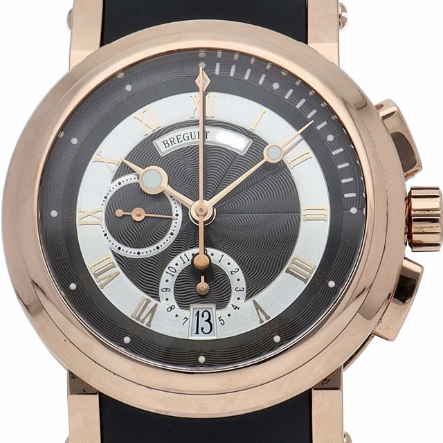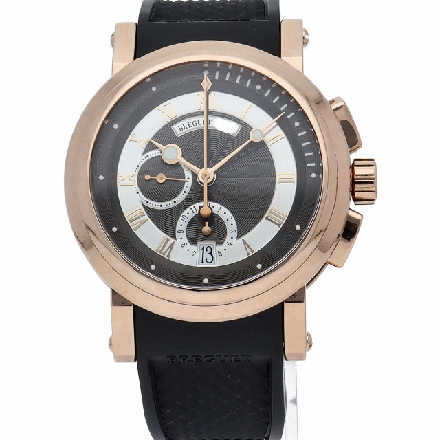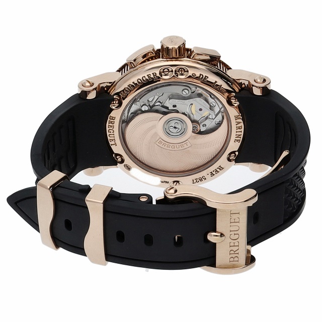 ブレゲの中でも特に人気のあるスポーツライン「マリーン2」。こちらはケースにピンクゴールドを使用し、高級感あるデザインが人気の秘訣です。クロノグラフ機能を搭載、裏スケルトン仕様のため、美しいムーブメントをご覧になることができます。