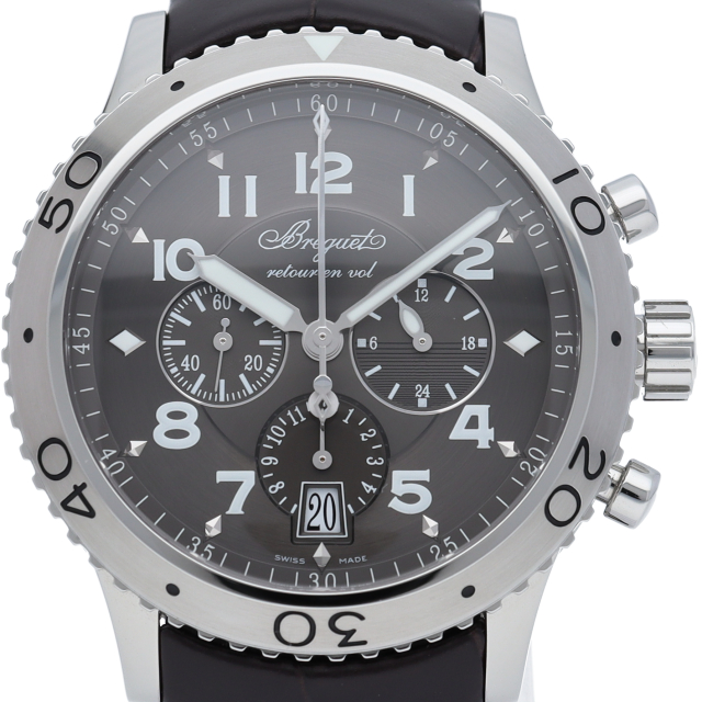 ブレゲの人気パイロットウォッチ「トランスアトランティック タイプXXI」。クロノグラフ・フライバックという組み合わせは、機械式時計が好きな方にも満足頂ける機能です。