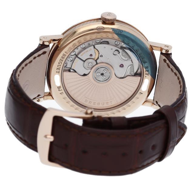 ブレゲの伝統的とも言える手掘りによるギョーシェ文字盤やコインエッジ入りのケース等、ブレゲが培ってきた技術を惜しみなく投入したモデルです。