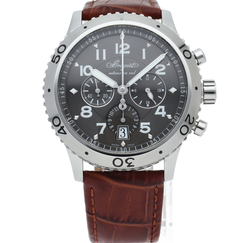 ブレゲの人気パイロットウォッチ「トランスアトランティック タイプXXI」。クロノグラフ・フライバックという組み合わせは、機械式時計が好きな方にも満足頂ける機能です。