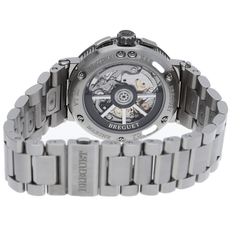 ブレゲの人気スポーツコレクション“マリーン”のチタンケースモデル。文字盤には爽やかなブルーダイアルを合わせ、秒針の最後部には国際海洋信号旗の「B」のモチーフがあしらわれます。ムーブメントもアップデートされ、シリコン製ホーンのインバーテッド・インラインレバー脱進機とシリコン製ひげゼンマイを採用した48時間パワーリザーブのキャリバー582QAを搭載しています。