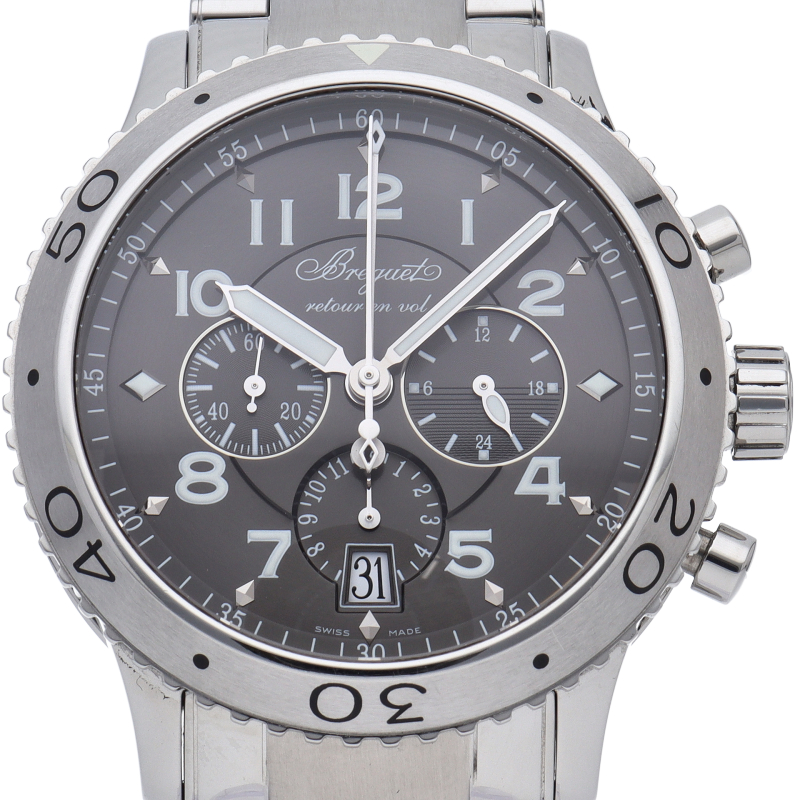 ブレゲの人気パイロットウォッチ「トランスアトランティック タイプXXI」。クロノグラフ・フライバックという組み合わせは、機械式時計が好きな方にも満足頂ける機能です。