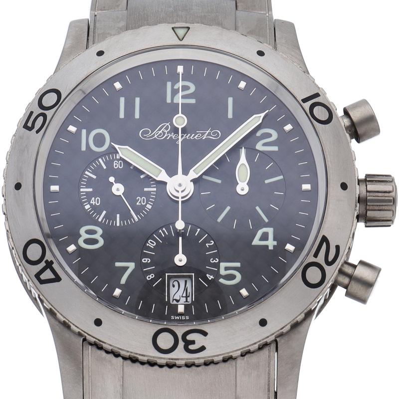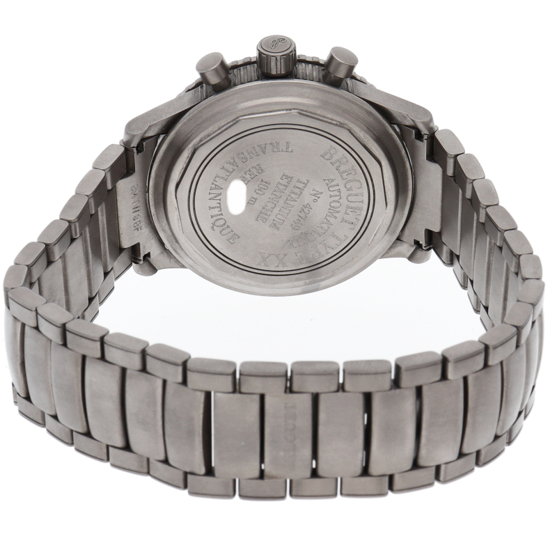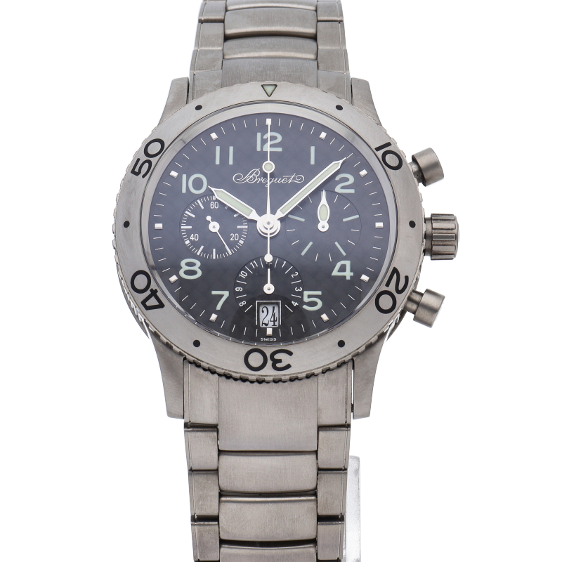 ブレゲの人気パイロットウォッチ「トランスアトランティック」。フライバック機能付クロノグラフ・デイト表示機能搭載で機能性やデザイン性に富んだ1本。