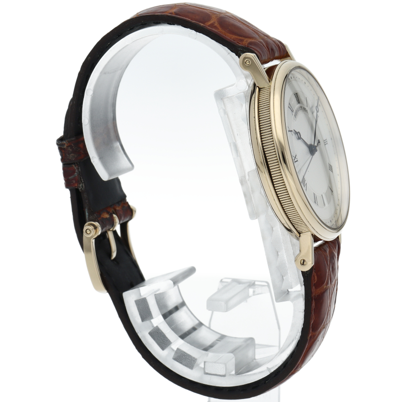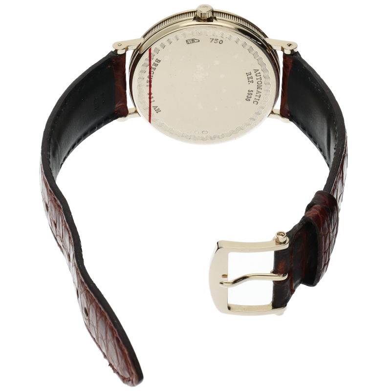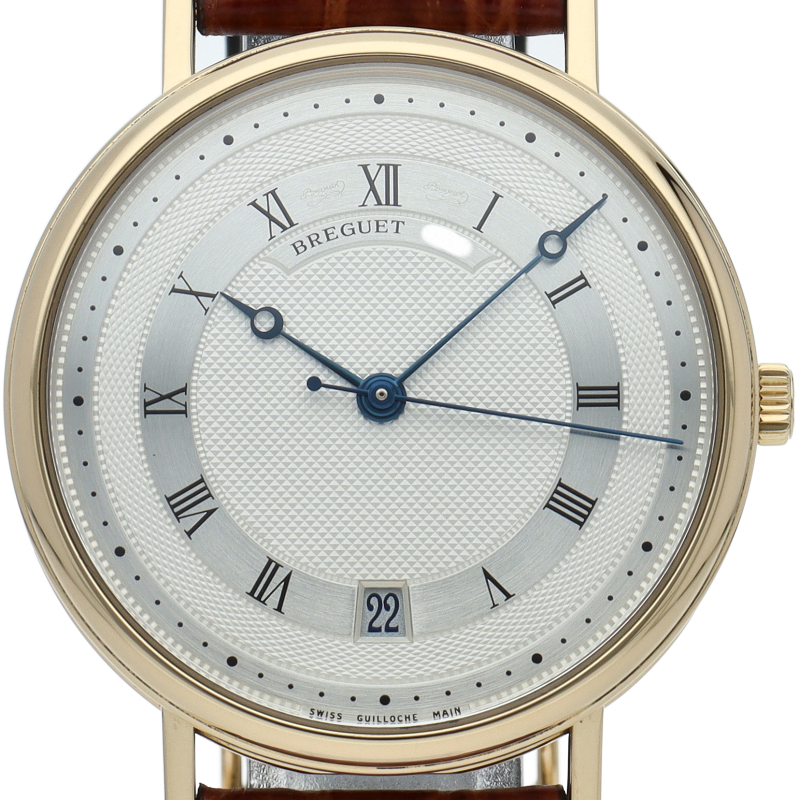 ブレゲの伝統的とも言える手掘りによるギョーシェ文字盤やコインエッジ入りのケース等、ブレゲが培ってきた技術を惜しみなく投入したモデルです。