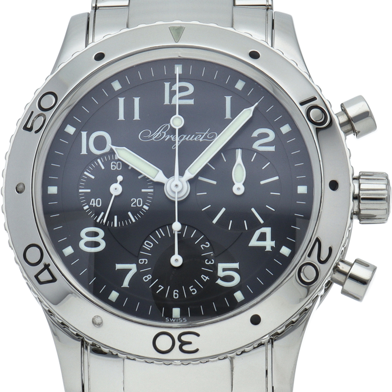 ブレゲの人気パイロットウォッチ「アエロナバル」。ムーブメントにはフライバック機能付クロノグラフ「レマニア製Cal.582」を採用、機能性やデザイン性に富んだ1本。