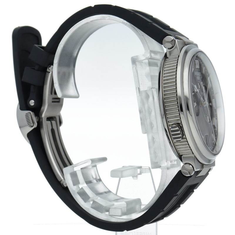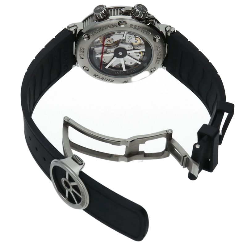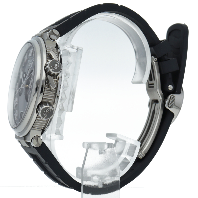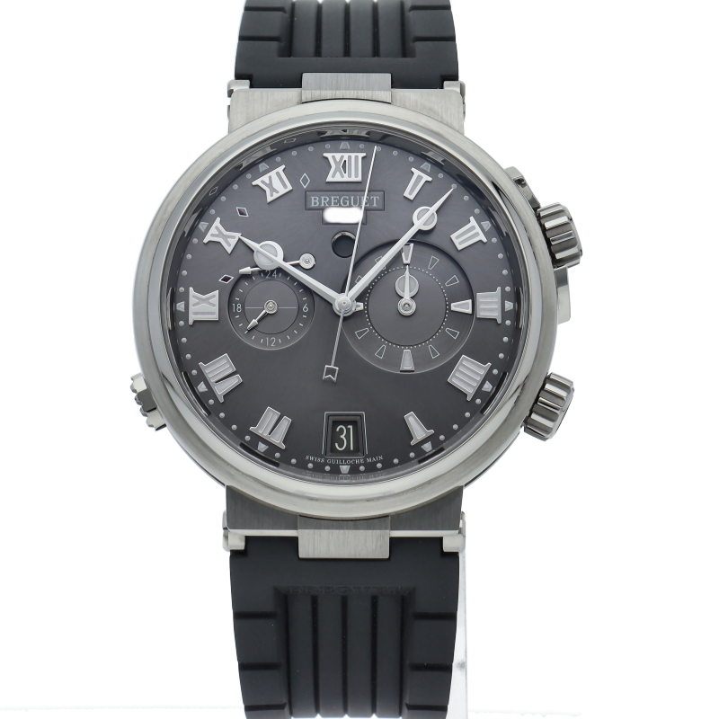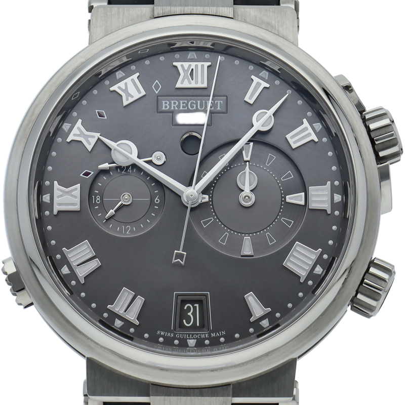 ブレゲ人気のGMTアラームがマリーンのシリーズに登場。ケース径はおさまりのよい40ミリに抑え、マリーンシリーズでは初のチタン素材を採用。左右非対称の文字盤はデザイン性も豊かで存在感があります。