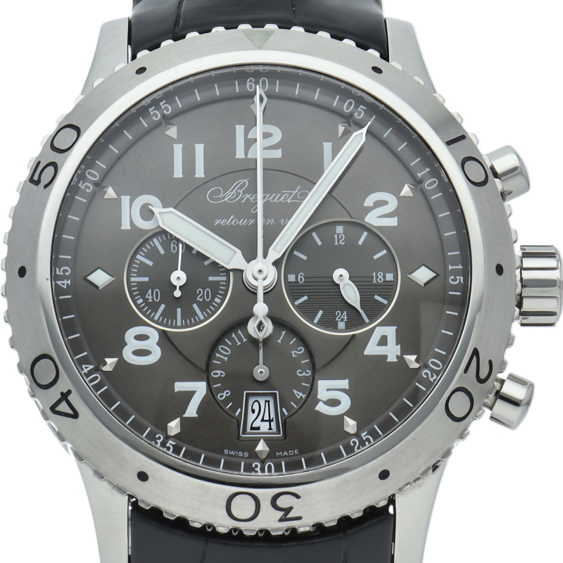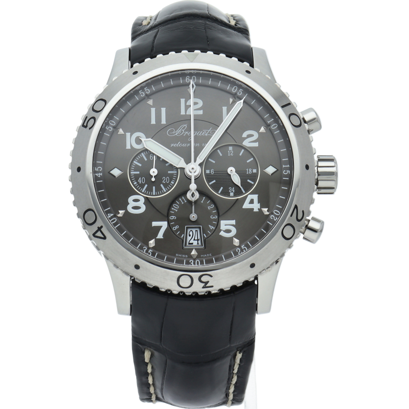 ブレゲの人気パイロットウォッチ「トランスアトランティック タイプXXI」。クロノグラフ・フライバックという組み合わせは、機械式時計が好きな方にも満足頂ける機能です。